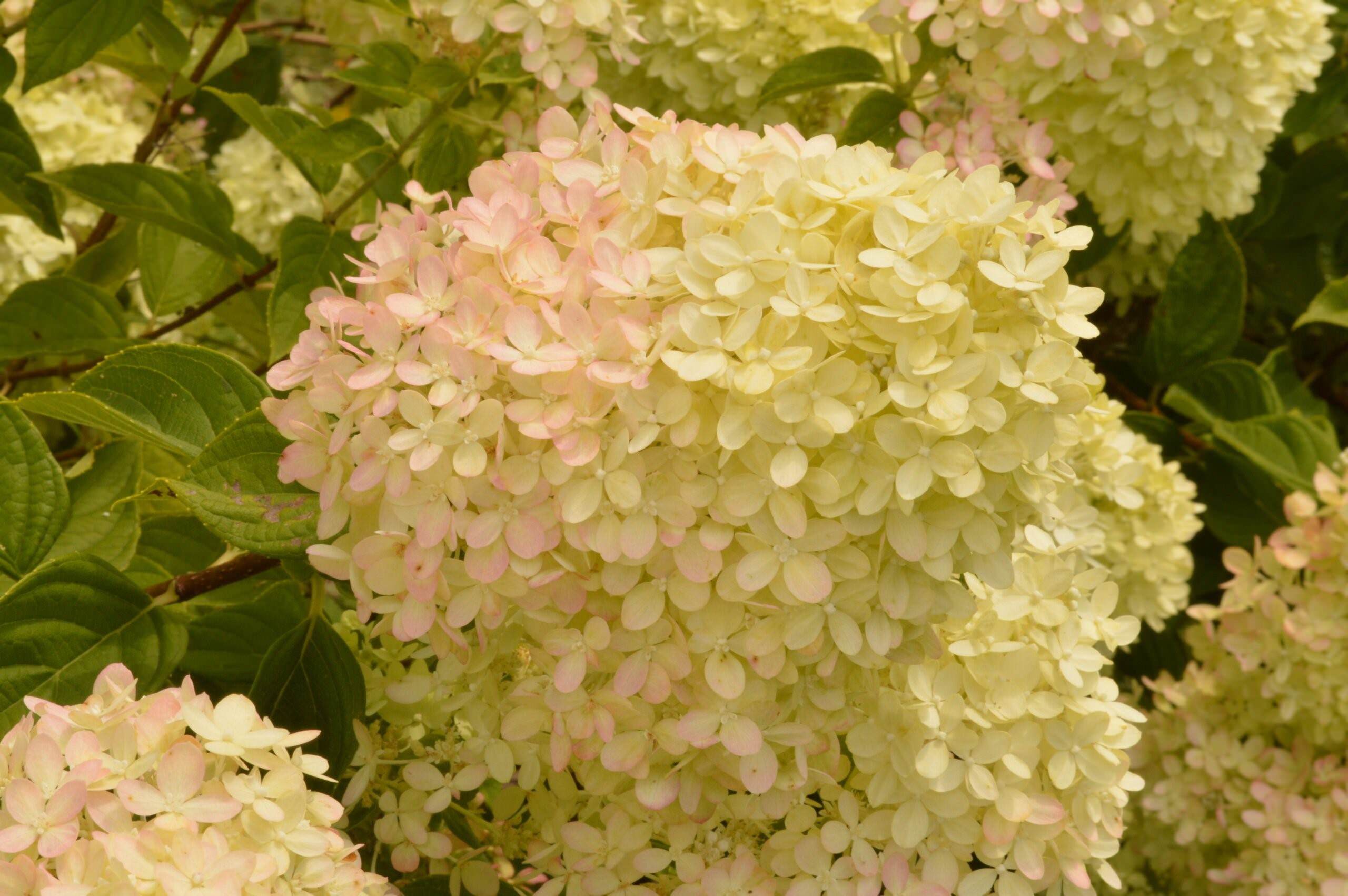 Цветки белые или бледно-розовые. Прочные толстые побеги не ломаются от порывов сильного ветра. Подходит для выращивания в горшках на балконах и верандах. Место солнечное или полутенистое, почва питательная, влажная, рыхлая. Высота: 1-3 м. Соцветия крупные, конусообразные. Период цветения: июнь-октябрь. Зимостойкость: -30°С, зона 4.