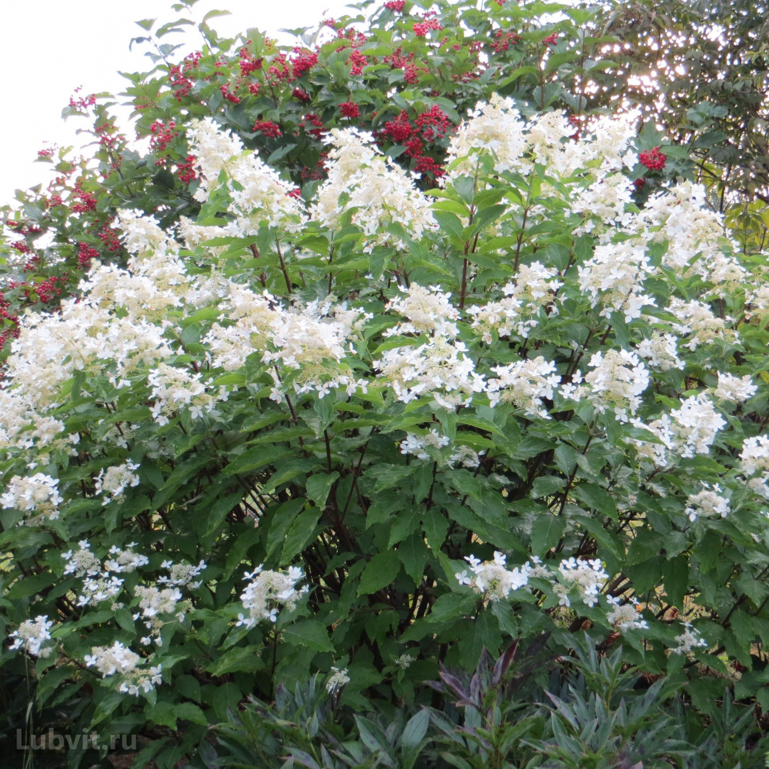 Отличный представитель белоцветущих сортов гортензий. Куст не требует подвязки, так как побеги прочные, красно-коричневые. Стерильные цветки распределены в соцветии неравномерно. Предпочитает почвы богатые гумусом, слабокислые. Высота: 1,5-1,7 м. Крона шарообразная. Соцветия рыхлые конусовидные, длина 15-20 см. Лист зеленый, шершавый, крупный, продолговатый и заостренный. Цветение: июнь-сентябрь. Морозостойкость зона: -29 °С, зона 4. С возрастом зимостойкость повышается.