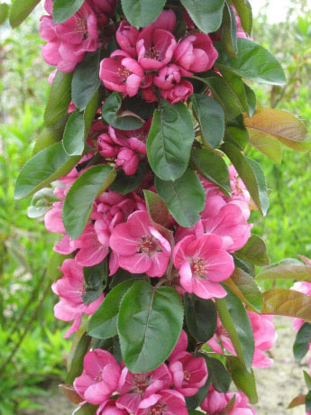 Листопадное, быстро растущее дерево 4-6 м. высотой.Форма кроны колоновидная, компактная. Кора темная, шероховатая. Листья овальные, бордового цвета, глянцевые.Плоды съедобные, не крупные, желтые с обширным темно-красным покрывным румянцем, блестящие.Цветы белые, в бутоне темно-розовые. Распускаются в мае в большом количестве.Декоративная яблоня Ред Обелиск используется в ландшафтном дизайне как солитеры, высаживается в композиции и живые изгороди, аллеи. Подходит для выращивания на шпалере.Для посадки выбирают солнечное, желательно, защищенное от ветра место. Почвы предпочитают плодородные, рыхлые, умеренно влажные, хорошо дренированные. Вредителей у яблонь много, к основным можно отнести гусениц, тлей, листоверток. Для их уничтожения применяют системные инсектициды. Листоверток перед обработкой, по возможности, собирают вместе с листьями и сжигают.Из грибковых заболеваний самыми распространенными являются парша и черный рак. Мерами борьбы служат регулярные опрыскивания деревьев препаратами на основе меди ( Абига-Пик, ХОМ). Желательно не допускать появления вредителей и болезней и соблюдать условия агротехники. Регулярное внесение удобрений и проведение профилактических обработок значительно повысит иммунитет декоративной яблони Ред Обелиск.Успешно культивируется на территории московской области. Зимостойкость высокая.