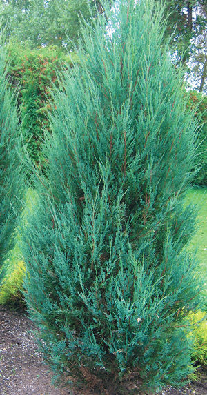 Вечнозелёный хвойный кустарник. Узкоколонновидный, высотой от 5 до 8 м и шириной от 0,5 до 1 м. В 10-летнем возрасте растение достигает 2-2,5м в высоту и 0,5-0,7м в диаметре. Годовой прирост 10-15 см в высоту и 5см в ширину. Побеги расположены плотно, прижаты к стволу. Растут вертикально вверх. Нижние ветви растут почти от самого основания ствола и очень долгое время сохраняются. Эта особенность дает неограниченные возможности в универсальном использовании сорта. Хвоя насыщенно - голубая, мягкая, чешуйчатая. Окраска хвои не меняется. Шишкоягоды округлые темно-голубые, с голубым налетом, шишкоягоды, 5-7 мм в диаметре.Можжевельник лучше высаживать на солнечных местах, допускается небольшое затенение. Расстояние между высаживаемыми растениями от 0,5 до 2 м. в зависимости от размера. Можжевельники предпочитают почву с реакцией от слабокислой до нейтральной. В засушливое лето его необходимо поливать. Можжевельники плохо переносят сухость воздуха, поэтому желательно регулярно проводить дождевание. На зиму растения присыпают торфом толщиной слоя 10 см, а молодые растения укрывают. Колонновидные сорта могут страдать от сильных снегопадов, поэтому осенью ветки прижимают к стволу лентой или веревкой. Зимостойкость высокая. Почти все можжевельники содержат токсичные вещества. Этот факт обязывает садоводов соблюдать осторожность при обрезке: производить все работы исключительно в защитных перчатках. Особое внимание следует обратить на то, чтобы предостеречь детей от непосредственного контакта с шишкоягодами, ветками и другими частями можжевельника.Очень ценный сорт для создания небольших и масштабных ландшафтных композиций из хвойных и лиственных деревьев и кустарников с различной архитектурой и контрастной окраской листвы. Прекрасно смотрится как солитер или в составе небольших групп в вересковых садах и альпинариях, а также в свободно растущих миксбордерах. Используется для создания прекрасной живой изгороди, которая не требует стрижки и занимает очень мало места. На расстоянии трёх метров фитонциды хвои уничтожают все болезнетворные микробы и вирусы. Где растут можжевельники, там и воздух чище.
