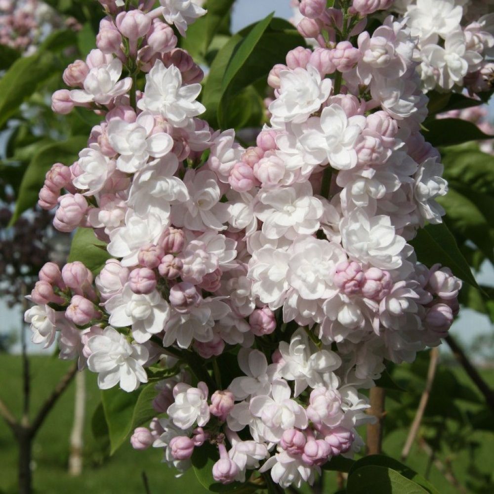 Сирень "Красавица Москвы" - шикарный сорт махровой сирени, названый экспертами ЮНЭСКО самой красивой сиренью мира.Цветы махровые крупные, диаметром около 2,5-3 см, меняют интенсивность цвета по мере роспуска. Розово-лиловые бутоны приоткрываются белыми цветами с розовыми кончиками, а распускаются жемчужно-белыми цветами. Цветение обильное в средние сроки, соцветия плотные, крупные. Растение среднерослое, ширина кроны около 3 метров, а высота до 4 метров.Предпочитает питательные хорошо увлажнённые почвы без застоя воды. Не переносит тяжёлые почвы, высокий уровень грунтовых вод. Может формироваться с помощью обрезки. Сирень морозоустойчива и засухоустойчива, устойчива к болезням и вредителям. Может расти в полутени, но обильное цветение возможно только на хорошо освещенных участках. В основном, кустарники сирени используют как живую изгородь или просто украшение для сада – ведь крона кустарника очень пышная, как и все ветки в целом.