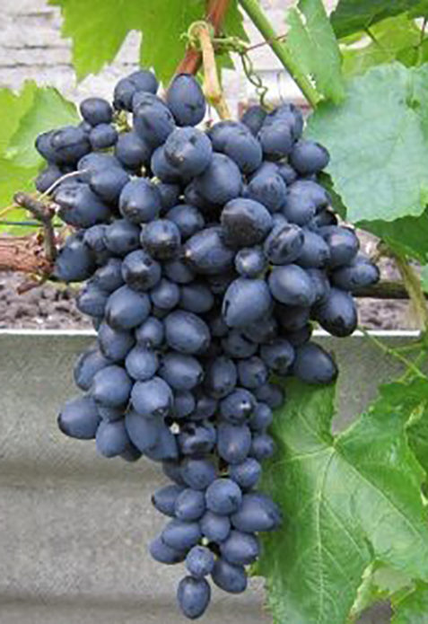 Виноград Надежда Ранняя — молодой сорт, но уже успел стать популярным. Его полюбили в первую очередь начинающие садоводы, которые не хотели бы затрачивать много усилий на виноград, зато не против похвастаться красивыми гроздочками и самим полакомиться ягодками. Он действительно не капризен к почве, не требует изощрений в агротехнике, не боится бактерий. Рослость куста большая. Грозди крупные, 700-100 г, конусообразные, в меру рыхлые, крылатые. К горошению не склонны. Ягода крупная, около 14 г, овальная, вытянутая, темно-синяя с характерным бело-лунным налетом. Шкурка очень плотная, умеренной толщины, съедаемая. Мякоть мясистая, сочная, с простым, но не примитивным, приятным вкусом. Вызревший побег зеленовато-коричневый, в красноту. Лист среднего размера, ярко-зеленый, округлый, среднерассеченный. Плодоножки толстые, крепкие, светло-зеленые, относительно длинные. Цветок и мужской, и женский.Сорт отличается высокой урожайностью, потому необходимо нормирование. Обрезают на шесть-восемь глазков, оставляя на куст 35. Ос практически не боится. Морозостойкость — 23-24 градуса по Цельсию.Также устойчив к паразитам. Нуждается в укрытии на зиму. Хорошо воспринимает дополнительный уход в виде поливов и регулярных подкормок, но не тех, что с большой дозой азота.