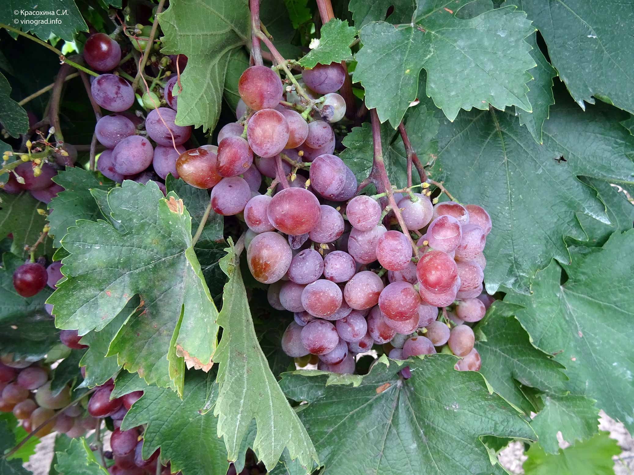 Виктория - столовая форма винограда с повышенной устойчивостью к болезням и морозу, раннего срока созревания. Период от распускания почек до съемной зрелости винограда 115-120 дней. Кусты слаборослые. Цветок функционально-женский. Листья средней величины, средне-рассеченные. Грозди крупные и очень крупные, 500-700г и более, конические, умеренно-плотные, реже рыхлые. Ягоды крупные, 6-7,5г, 27x22 мм, овально-яйцевидные, красно-малиновые, мясисто-сочные, приятного гармоничного вкуса. При полном созревании ягод появляется мускатный привкус. Сахаристость 17-19%, кислотность 5-6 г/л. Плодоносных побегов 70-90%, коэффициент плодоносности - 1,4-1,8. Урожайность высокая, требуется нормирование количества оставляемых соцветий и молодых гроздей. Укореняется хорошо. Нагрузка взрослых кустов 25-30 глазков на куст при длине обрезки плодовых лоз на 5-8 глазков и короткая на 2-4 глазка. В годы с неблагоприятными для цветения условиями возможно горошение, требует сорта-опылители, цветущие в одни сроки с ней. Форма винограда Виктория имеет повышенную устойчивость к милдью, оидиуму, серой гнили. Выдерживает морозы до -26 -27 °С. Вызревание побегов очень хорошее. Положительно отзывается на высокий уровень агротехники.